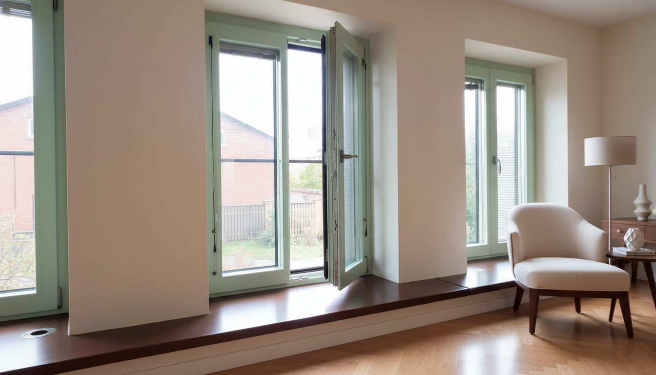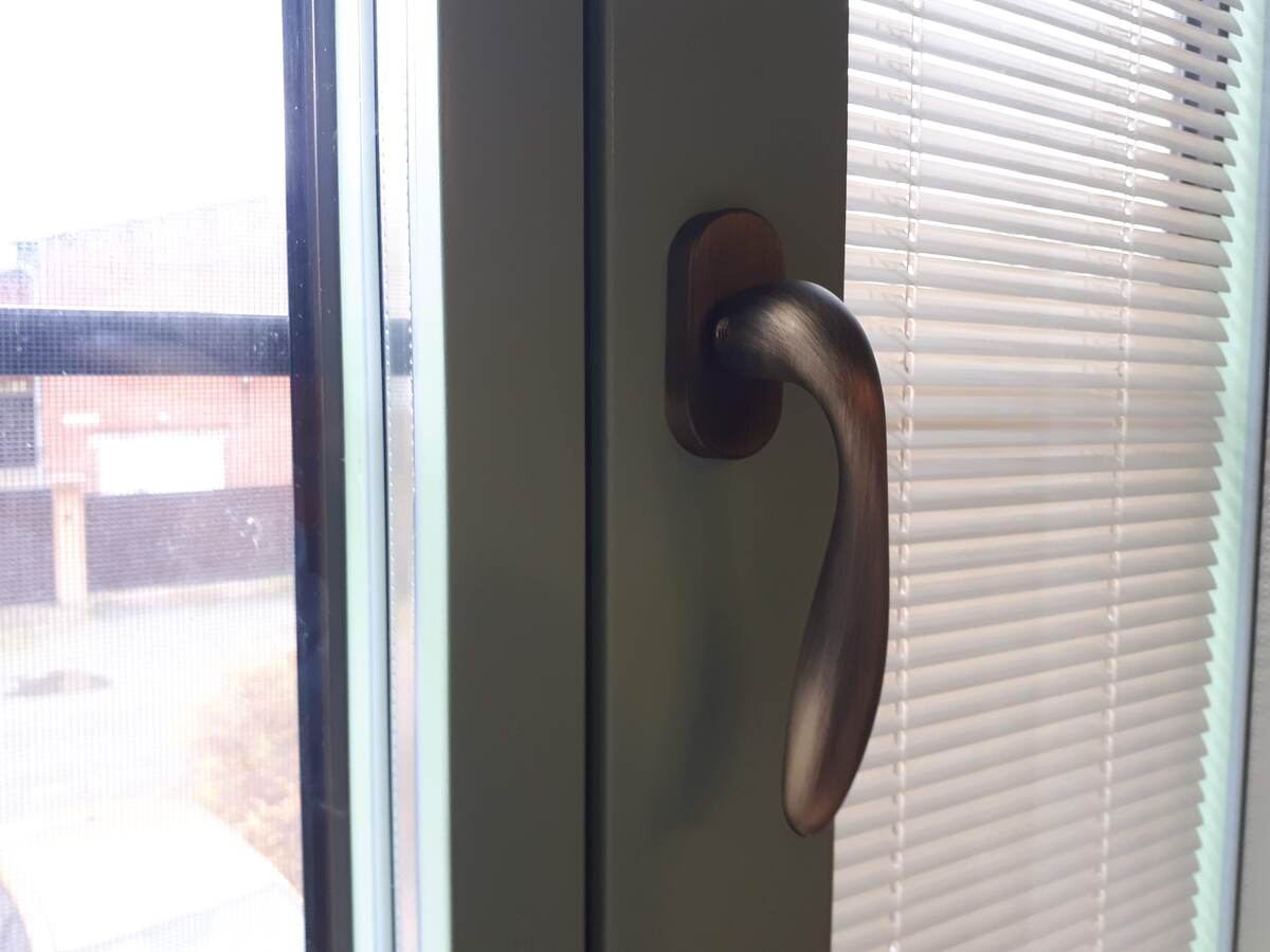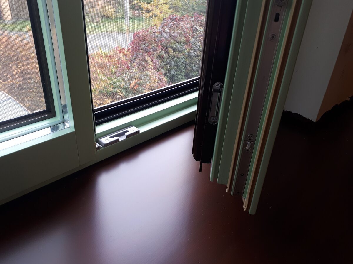 Акцентом проекта стала итальянская ручка из латуни. Этот элемент не только подчеркивает премиальный статус окон, но и служит ярким декоративным штрихом. Латунная ручка с её тёплым блеском идеально сочетается с мятным цветом, создавая ощущение гармонии и завершенности.