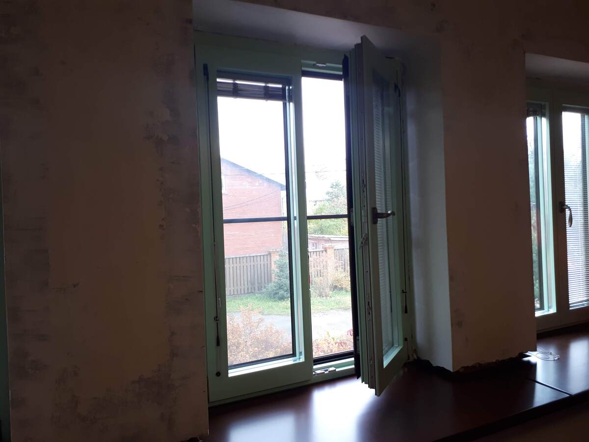 В качестве материала мы использовали натуральную сосну — древесину, известную своей легкостью, прочностью и красивой текстурой. Особую индивидуальность окнам придаёт укрывной мятный цвет: свежий, стильный и универсальный оттенок, который гармонично вписывается в современные интерьеры, добавляя им нотку элегантности и уюта.