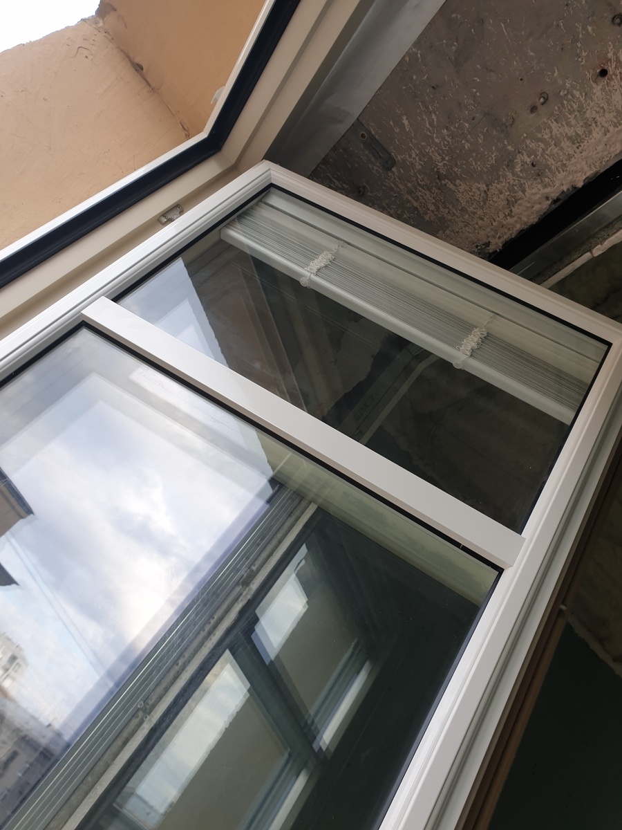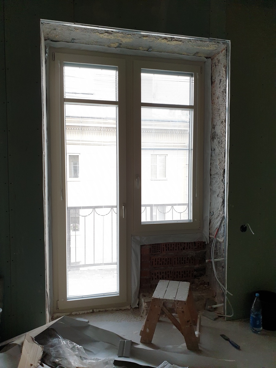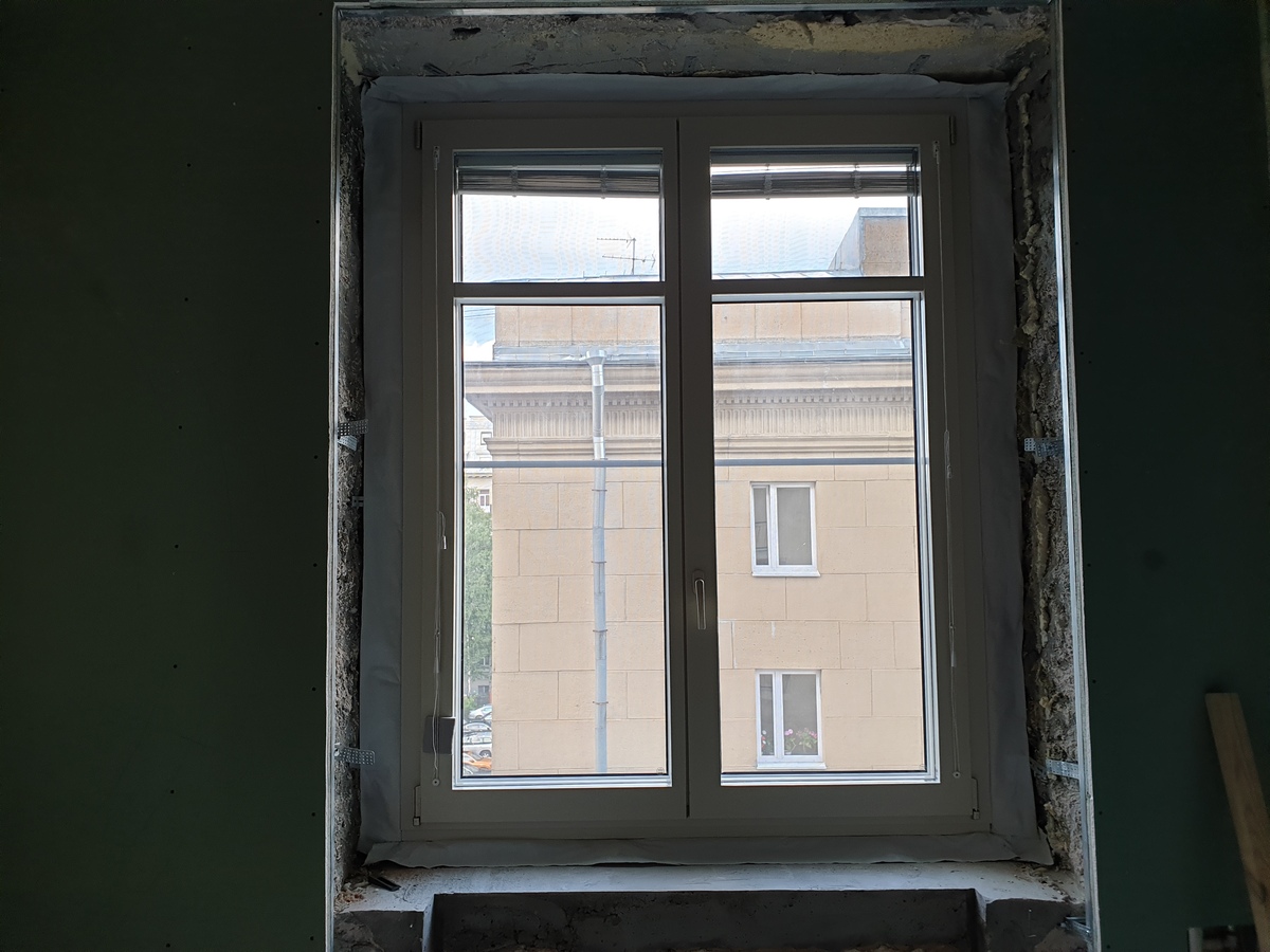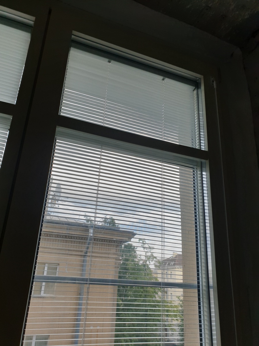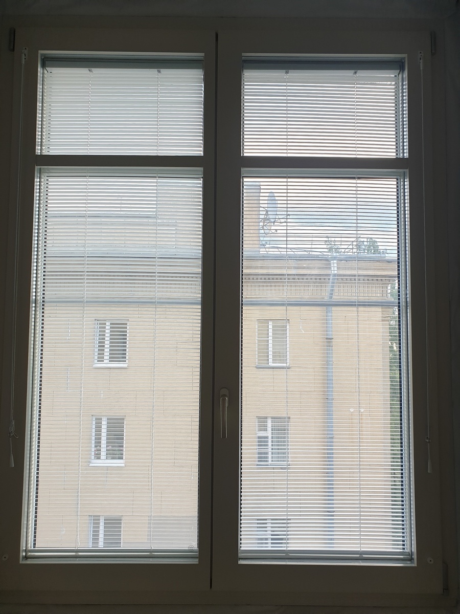 В качестве материала была выбрана сосна — древесина, которая не только экологична и долговечна, но и обладает отличными тепло- и звукоизоляционными свойствами. Особенностью этих окон стали встроенные жалюзи, расположенные между стёклами: они не требуют ухода, не собирают пыль и позволяют легко регулировать уровень света и приватности.
